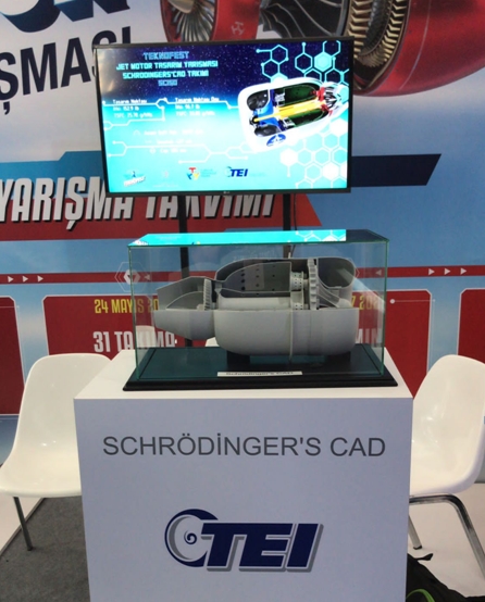 Kavramsal Tasarım Raporu, Detay Tasarım Raporu ve Final Değerlendirme olmak üzere üç farklı aşamada gerçekleştirilen yarışmaya Doç. Dr. Özge Altun’un danışmanlığında katılan ESOGÜ Makine Mühendisliği Bölümü son sınıf öğrencileri Çağla Kaymaz, Edanur Karaca ve Ali Gezer’den oluşan Schrödinger’s CAD takımı üçüncülük ödülünü kazandı. 197 takımın katıldığı yarışmada dereceye giren üç takım tarafından tasarlanan jet motor modelleri TEI-TUSAŞ Motor Sanayii A.Ş. tesislerinde üretildi. Schrödinger’s CAD takımının başarısı ESOGÜ’yü gururlandırdı.