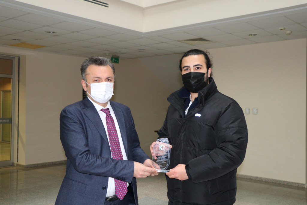 2021 Uluslararası TEKNOFEST Efficiency Challenge Elektrikli Araç Yarışları’nda Tanıtım ve Yaygınlaştırma ödülünü alan ESOGÜ Mavera Teknoloji Takımı, Rektörümüz Prof. Dr. Kemal Şenocak’a süreç boyunca verdiği desteklerden dolayı teşekkür plaketi takdim etti. Rektör Prof. Dr. Kemal Şenocak da Mavera Teknoloji Takımı’nı kutlayarak kendilerine teşekkür belgesi ve hediye takdiminde bulundu. Etkinlikte Rektör Yardımcıları Prof. Dr. Ali Arslantaş, Prof. Dr. Rifat Edizkan ile Prof. Dr. Kamil Çolak da hazır bulundu.