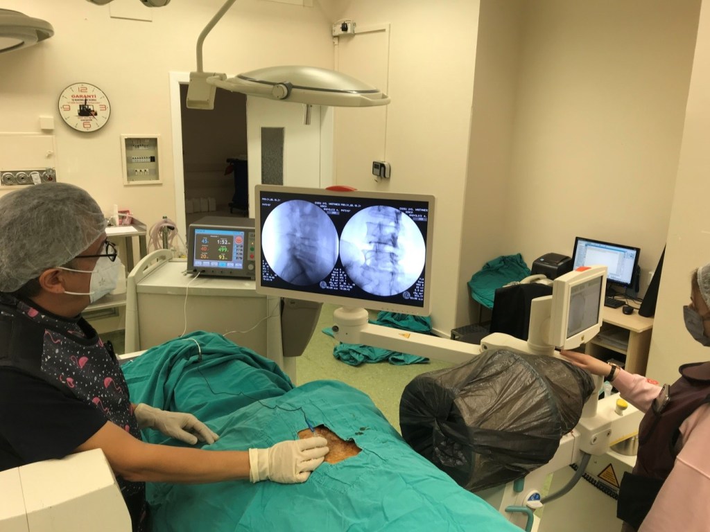 Söz konusu yöntemlerin ağrıları geçirebilecek mucizevi yöntemler olup olmadığını kaydeden Prof. Dr. Güleç, hastaların büyük çoğunluğuna yaşam kalitelerini önemli ölçüde artıracak müdahalelerde bulunabildiklerini belirterek ağrı pili (spinal kord stimülasyonu) uygulamasını anlattı. “Ağrı pili diye adlandırdığımız bu uygulamada bel, göğüs ya da boyun bölgesinde omuriliğin arka kısmına elektriksel uyarılar vererek ağrı iletiminin durdurulması amaçlanır. Ağrı pili; ilaçlar, fizik tedavi uygulamaları, basit girişimsel yöntemler ve cerrahi ile geçirilemeyen ya da bu yöntemlerle geçmeyeceği bilinen ağrıların tedavisi için kullanılır. Bunların dışında kontrol edilemeyen kalp ağrıları, kollar ve bacaklarda damar tıkanıklığı nedeniyle olan ağrının tedavisi ve kanlanmayı artırarak kangrene gidişi engellemek amacıyla da kullanılır. Öncelikle bu hastalar bu tedaviden fayda görebilirler mi diye değerlendirilir. Uygun olduğu düşünülen hastalar başka bölümlerin de görüşünü almak amacıyla Beyin Cerrahisi, Fizik Tedavi ve Psikiyatri Bölümlerine konsülte edilir. Tüm bölümler uygun gördükten sonra pil takılmak üzere hasta hazırlanır. Ameliyathanede yapılan işlem sırasında hasta genel anestezi almaz. Hastaya ağrı kesici ve sakinleştirici ilaçlar verildikten sonra lokal anestezi uygulanır. Bir iğne ile omuriliğin arkasındaki bir alan olan epidural mesafeye girilir. İğne içinden elektriksel uyarıları verecek olan ‘lead’ olarak adlandırdığımız ince bir kabloya benzeyen tel geçirilerek uygun yere yerleştirilir. Doğru yeri anlamak için bu telden uyarı vererek hastaya nerede akım hissettiği sorulur ve sonrasında lead en uygun yere yerleştirilir. Deneme aşaması için bu telin diğer ucu ciltten dışarı çıkartılarak cep telefonu benzeri bir cihaza bağlanır. Cihaz teknik elemanlar tarafından ağrıyı giderecek en doğru akımı vermek üzere ayarlanır. Bir iki haftalık deneme aşaması sonrasında ağrıları rahatlayan hastalar (yaklaşık %70) tekrar ameliyathaneye alınır, hastanın vücuduna kibrit kutusu büyüklüğündeki kalıcı pil yerleştirilir. Yeni pillerin ömürleri 10 yıla ulaşmıştır. Biten piller küçük bir cerrahi girişim yapılarak yenisiyle değiştirilir.”