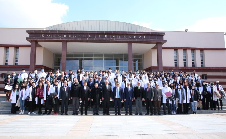 14 Mart Tıp Bayramı kutlama töreni ESOGÜ Kongre ve Kültür Merkezi önünde hatıra fotoğrafı çektirilmesinin ardından sona erdi.