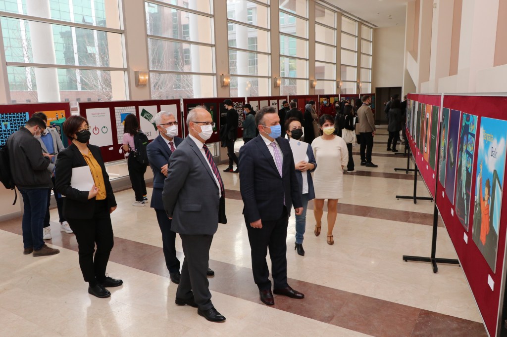 Sergi açılışında konuşan Sanat ve Tasarım Fakültesi Dekan Vekili Dr. Öğr. Üyesi Hatice Server Kesdi; geçmişte bağımlılık denildiğinde akla alkol, tütün ürünleri ve uyuşturucu maddelerin geldiğini, bugün ise iletişim teknolojilerindeki gelişim ile birlikte bağımlılığın çerçevesinin genişlediğini kaydetti. Teknoloji temelli bu yeni bağımlılık türlerine örnek olarak ekran, sosyal medya, dijital oyun ve sanal dünya bağımlılıklarını veren Dr. Öğr. Üyesi Kesdi, bağımlılığın bu yönüyle özellikle genç nüfusu tehdit ettiğini belirtirken, yarışmaya katılan üniversitelilerin gençlere yönelik yürütülen bu farkındalık çalışmasına önemli bir katkıda bulunduklarını ifade etti. Yarışmaya katılan ve eserleri sergide yer alan tüm öğrencilere başarılarının devamını dileyen Dr. Öğr. Üyesi Kesdi, yarışmanın düzenlenmesine emeği geçen ve destek verenlere teşekkür ederek konuşmasını tamamladı. Açılış konuşmasının ardından dereceye giren öğrencilere ödülleri Rektör Prof. Dr. Kemal Şenocak tarafından takdim edildi.