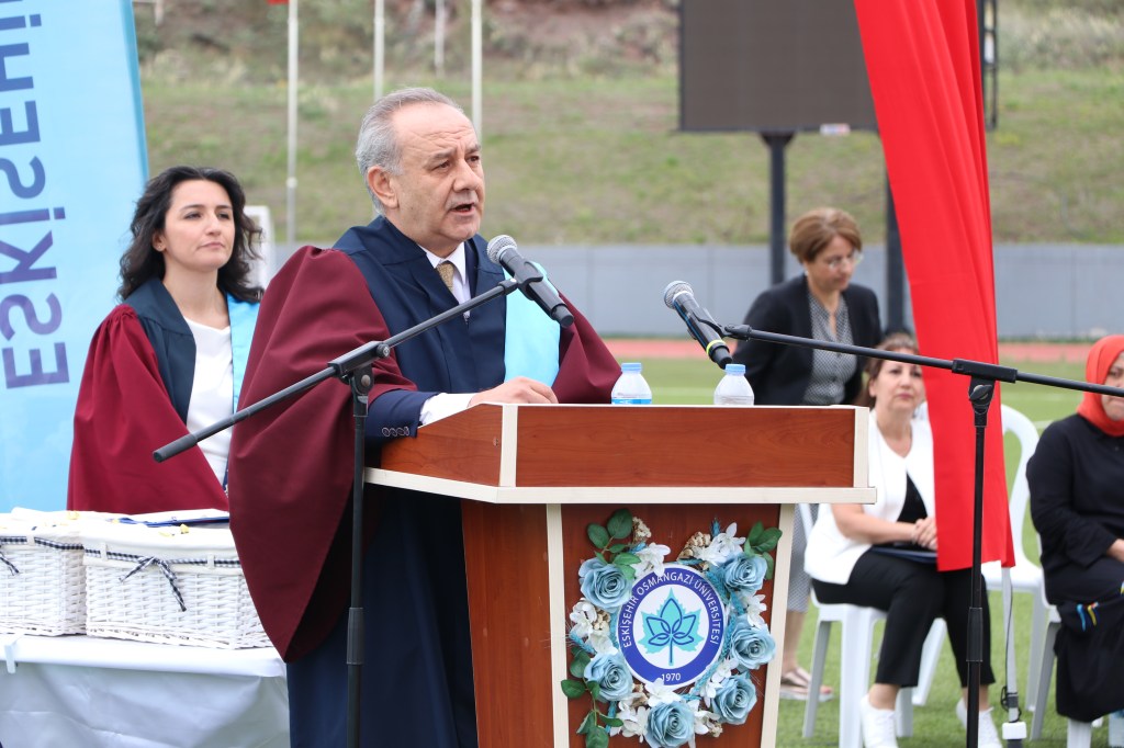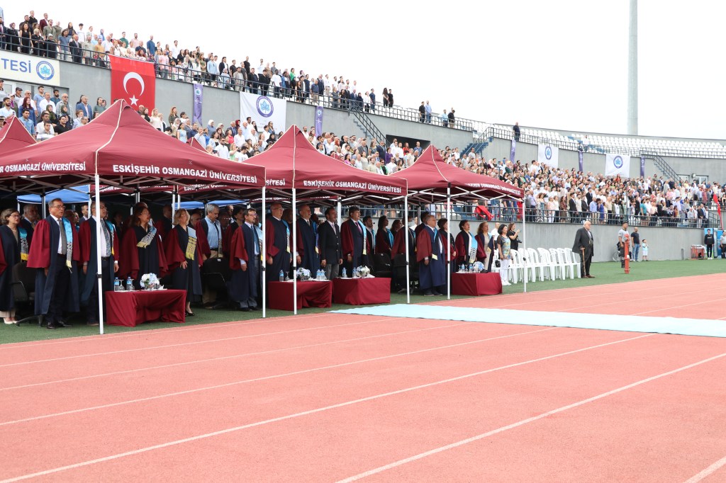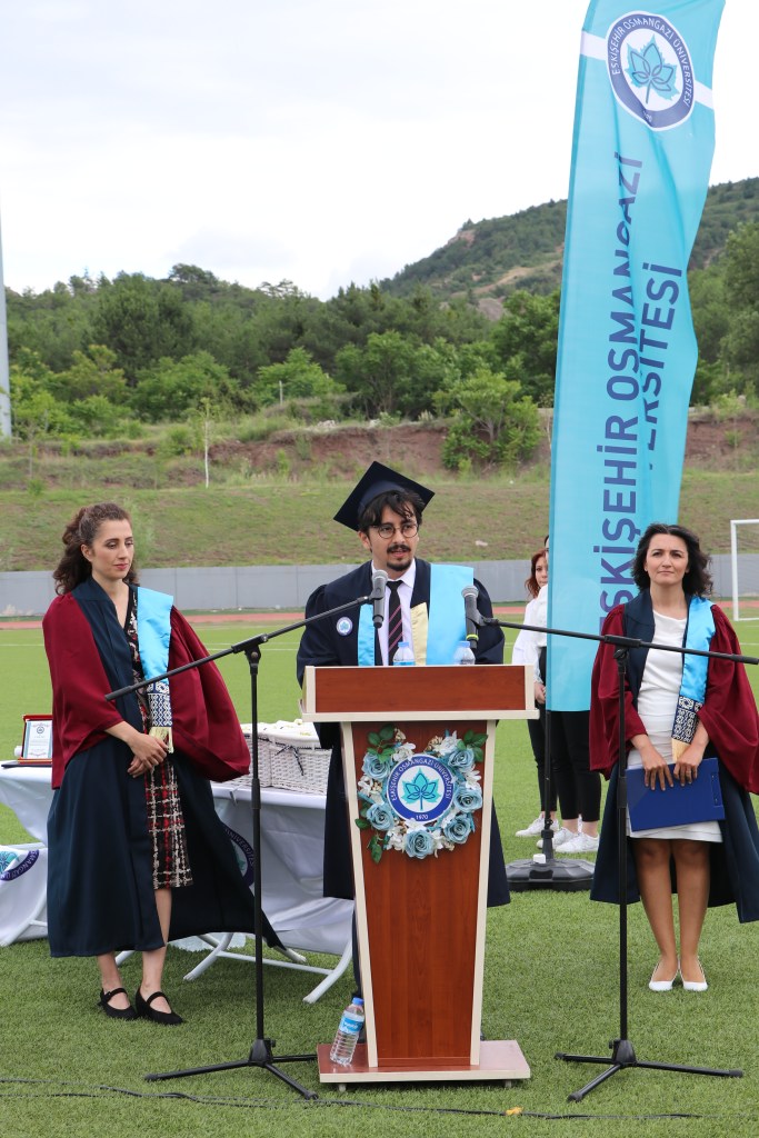 Açılış konuşmalarının ardından ESOGÜ Tıp Fakültesi Dekanı Prof. Dr. Alataş genç hekimlere Hekimlik Andını içirdi. Daha sonra mezuniyet belgelerinin verilmesine geçildi. Tıp Fakültesi dönem birincisi Dr. Bartu Yiğit Çalık yaş kütüğüne plaket çaktı. Ardından diğer mezunlara mezuniyet ve başarı belgeleri verildi. Tören keplerin topluca havaya atılmasıyla sona erdi.