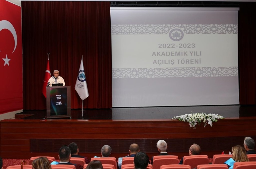 Üniversitemiz 2022-2023 Akademik Yılı Açılış Töreni, Kongre ve Kültür Merkezi’nde gerçekleşti. ESOGÜ Yönetimi, akademisyenler ve öğrencilerin katılımıyla gerçekleşen törenin açılış dersini Türkiye Maarif Vakfı Mütevelli Heyeti Başkanı Prof. Dr. Birol Akgün verdi.