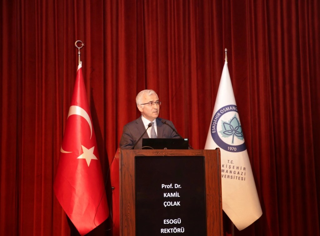 Açılış konuşmasını yapan ESOGÜ Rektörü Prof. Dr. Kamil Çolak, kadınların 21. yüzyılda hala hayatın her alanında varoluş mücadelesi vermek zorunda kalmalarının insanlığın en öncelikli sorunlarından biri olduğuna dikkat çekti. Kadınların yaşadığı güçlüklerin yalnızca ülkemizin değil tüm dünyanın sorunu olduğunu ifade eden Prof. Dr. Kamil Çolak, “Kadim tarihimiz boyunca hayatın her alanında etkin bir şekilde yer alan Türk kadınının değerini korumak, toplumda hak ettiği yere gelmesini sağlamak hepimizin vazifesidir.” diye kaydetti. Ülkemizde kadınların akademik hayattaki etkinliğini değerlendiren Prof. Dr. Kamil Çolak, Türkiye’de kadın öğretim elemanlarının oranının %50’lerin üzerinde bir oranla Avrupa’nın ilerisinde oluşundan duyduğu memnuniyeti dile getirdi.