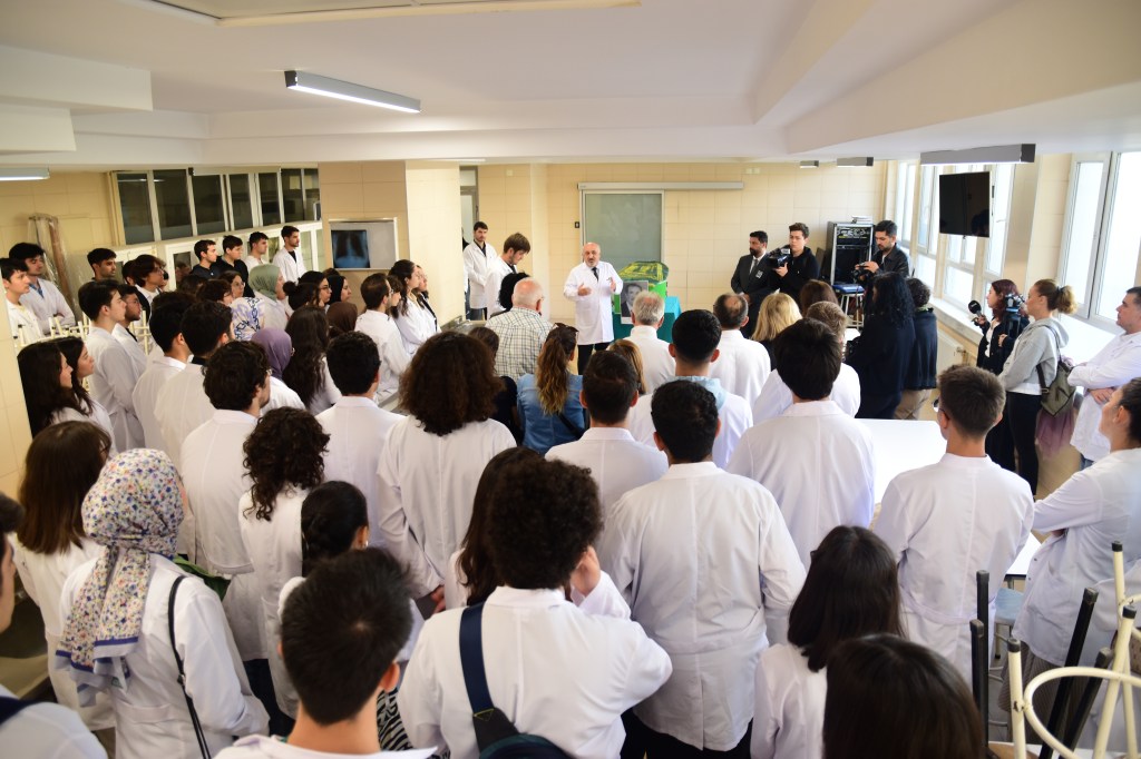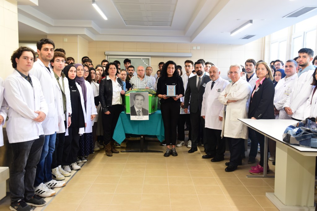 Kadavra bağışının tıp eğitiminde oldukça önemli olduğuna değinen Anatomi Ana Bilim Dalı Başkanı Prof. Dr. Ferruh Yücel, “Anatomi bizim için tıp eğitiminde olmazsa olmaz bir bilim dalı ve kadavra da anatomi eğitiminin bir temel parçası. O olmadan maketlerle hiçbir şey yapamayız. Yani teorik bilgi ama kadavra olmazsa hiçbir şekilde anatomi eğitimi yerine gelmiş olmaz. Eskiden belli bölgelerde kadavra çoktu. Belki kimsesiz kadavralar geliyordu adli vaka olarak. Ancak şu anda artan nüfus, artan üniversiteler, artan tıp fakülteleri ve öğrencileri nedeniyle kadavra ihtiyacı artık had safhaya ulaştı. Bir ara yurt dışından getirilmeye çalışıldı. O da ciddi rakamlar. Bunu şimdi telaffuz etmeyelim. Bu tamamen halkın bilinçlenmesiyle oluşacak bir şey. Bu törenin amacı da farkındalık oluşturmak. Farkında olan insanlar var. Zaten biz söylemeden geliyorlar, vücutlarını bağışlıyorlar. Organ bağışı yapan kişi aynı zamanda vücudunu da anatomiye bağışlayabilir. Organları alındıktan sonra biz yine burada bunları öğrencilerimize kadavra olarak gösteririz. Zaten biz de kullanmaya bağlı olarak kadavra 5-6 yıl kalır. Daha sonra uygun şekilde biz yöntemlerle onu tekrar Asri Mezarlığı’na götürüp belediyenin kontrolünde gömme işlemini gerçekleştiririz. Ben 1997’de geldiğimde 107 öğrencimiz vardı. Şu anda 420’yi geçti. Fiziki şartlarımız, laboratuvarımız tabii ki iyi ama bunun biraz daha arttırılması gerekiyor. Çünkü öğrencimiz arttı” dedi.