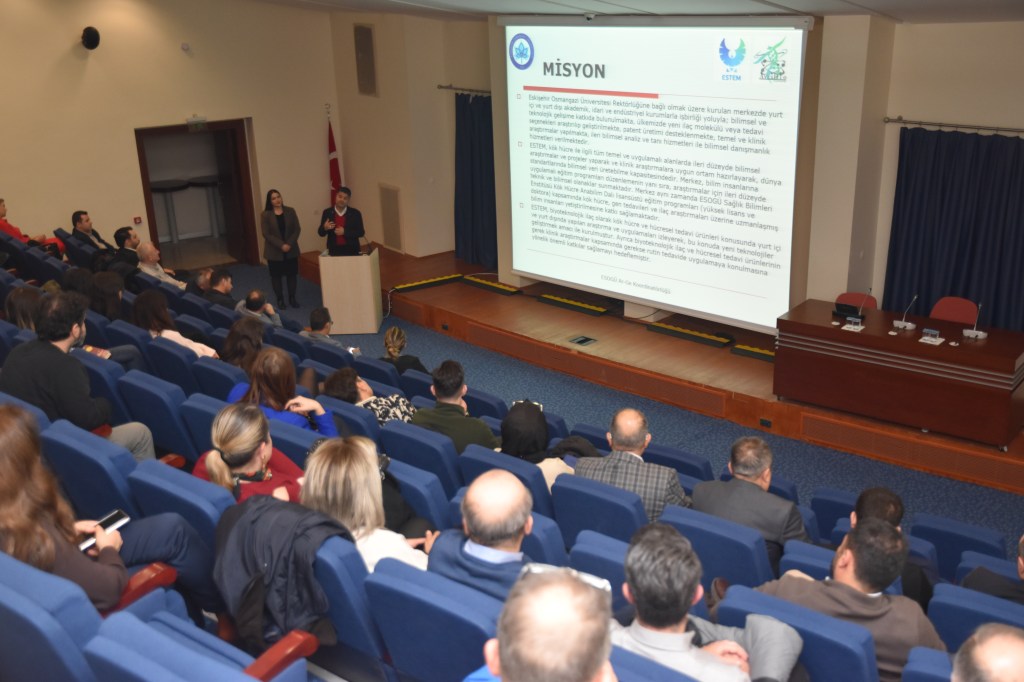 ESOGÜ Hücresel Tedavi ve Kök Hücre Üretim, Uygulama ve Araştırma Merkezi (ESTEM), ESTEM-MEMS ve Doku Mühendisliği Birimi Sorumlusu Mühendislik Mimarlık Fakültesi Metalurji ve Malzeme Mühendisliği Bölümü öğretim üyesi Doç. Dr. Hüseyin Avcı ESTEM’in çalışma koşullarını anlattı. Yürüttükleri projelere dair bilgilendirmelerde bulunan Avcı, multi-disipliner olarak bilimsel araştırmalar aracılığı ile yüksek lisans, doktora ve doktora sonrası araştırmacılar yetiştirdiklerini, kök hücre alanına önemli katkılar sağladıklarını ve daha fazlası için çalıştıklarını belirtti.