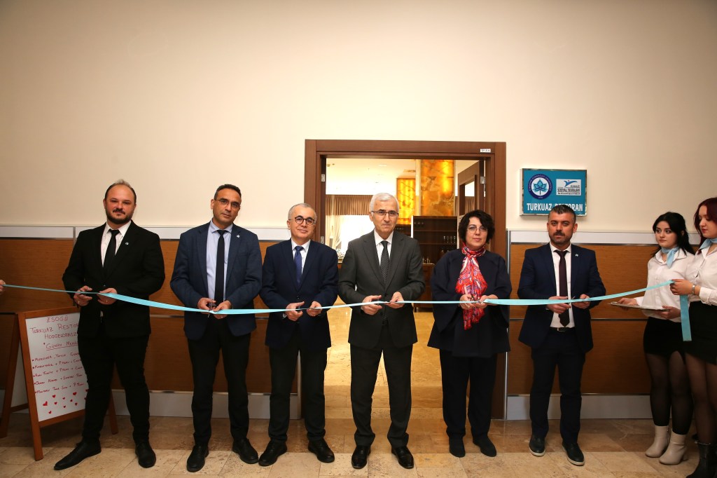 Üniversitemiz Kampüs alanında ESOGÜ Otel’in giriş katında bulunan, modern tasarımı ve geniş menüsüyle dikkat çeken Turkuaz Restoran düzenlenen törenle hizmete açıldı. Restoranın açılış kurdelasını ESOGÜ Rektörü Prof. Dr. Kamil Çolak, Rektör Yardımcıları Prof. Dr. Emine Gümüşsoy, Prof. Dr. Kürşat Bora Çarman, Prof. Dr. Hakan Demiral ile ESOGÜ Sosyal Tesisleri İktisadi İşletmesi Yürütme Kurulu Başkanı Doç. Dr. Barış Demirci ve Başkan Yardımcısı Doç. Dr. Yasin Emre Oğuz kesti. Akademik ve idari personelin katıldığı açılış töreninde konuşan Rektör Çolak önemli bir ihtiyacı karşılayacak yeni bir buluşma mekânı açmaktan duydukları memnuniyeti dile getirdi. Açılışın ardından davetlilere canlı müzik eşliğinde restoranın sunduğu özel tatlar ikram edildi.
